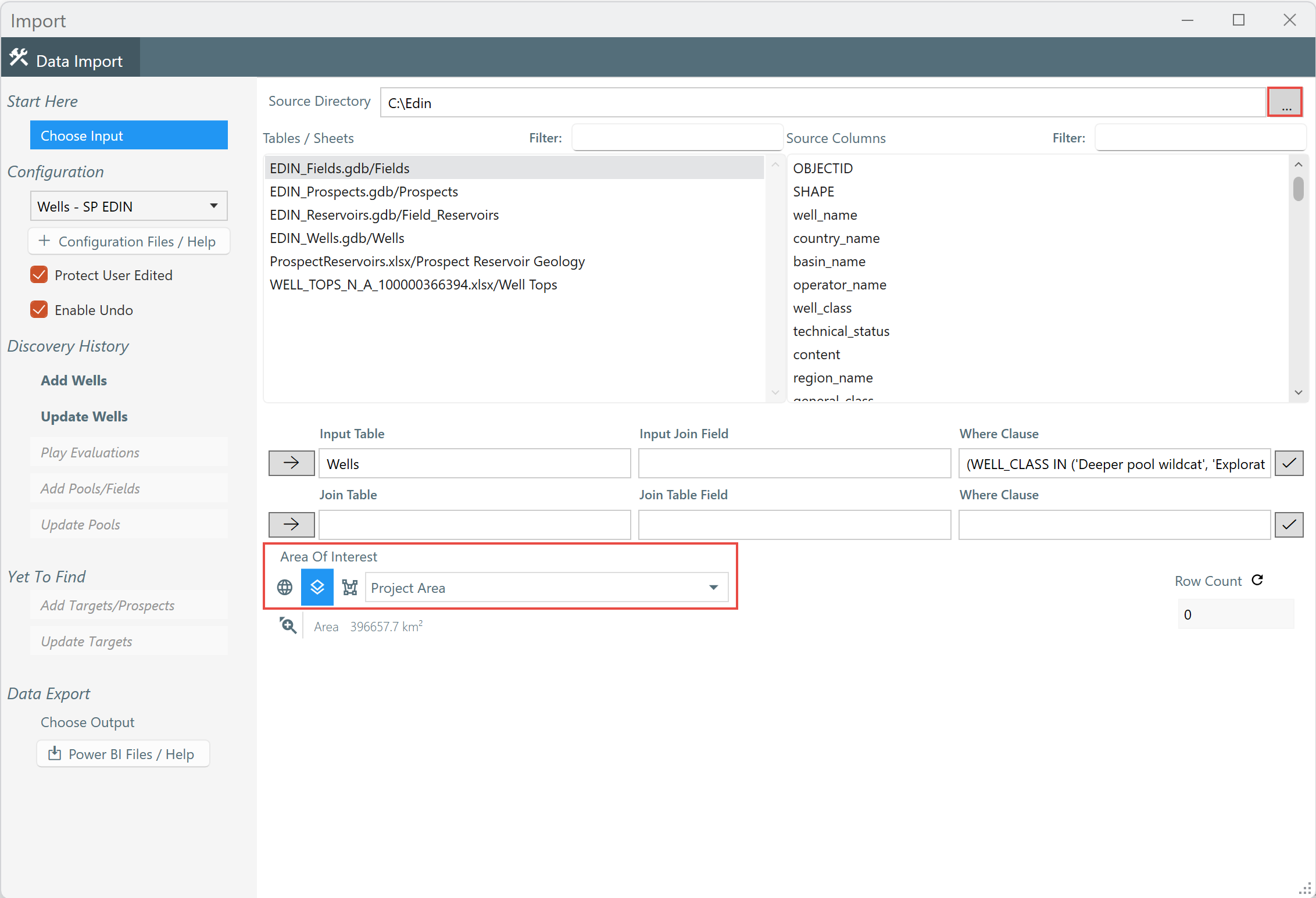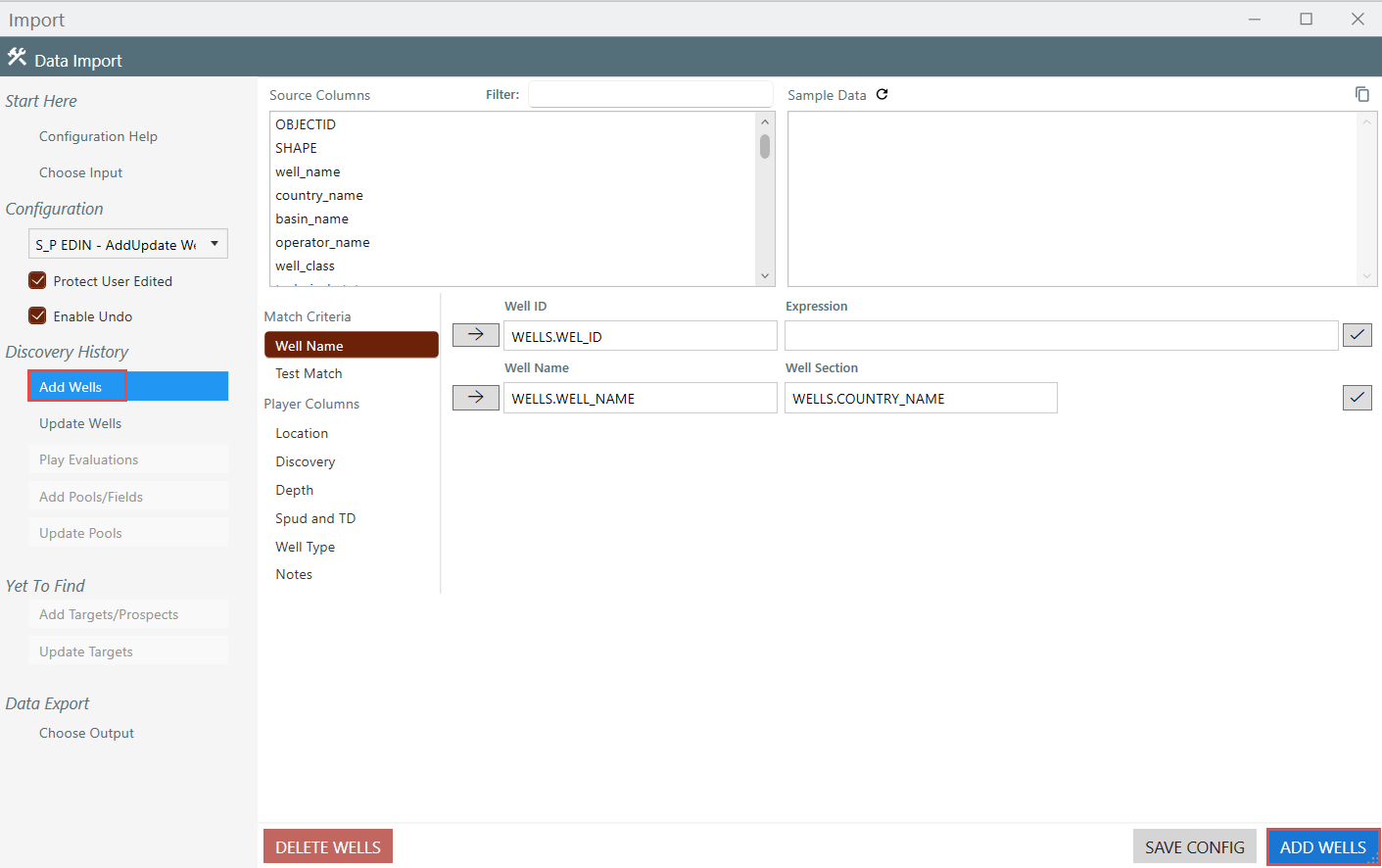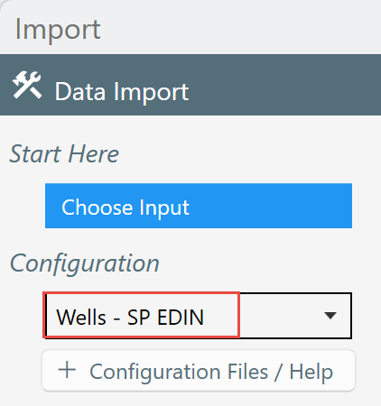 Having selected the source data and Configuration (see Download Configuration Files and Setup section), import wells as follows:
