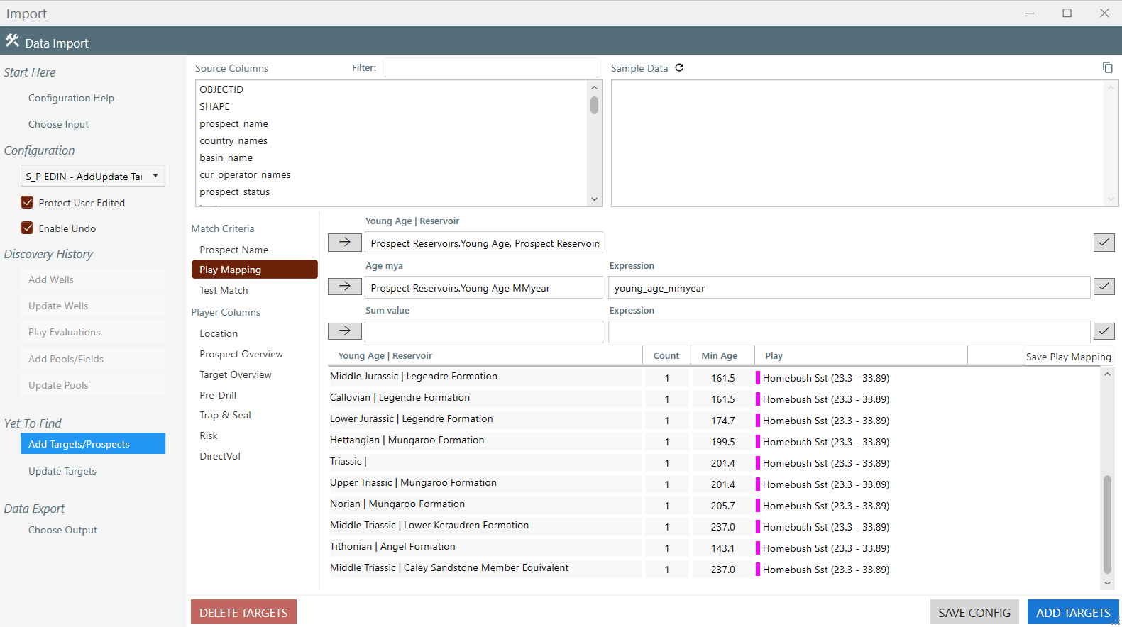 - From the Yet to Find select Add Targets/Prospects. From the Match Criteria select Play Mapping and select one of the ticks on the right side. Defining the plays from source data to Player plays is the same as with pools. When this is setup select Add Targets button to load prospects. Close dialog.